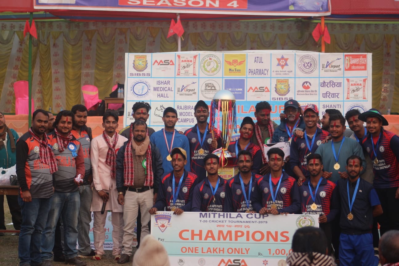 कलैया क्रिकेट क्लब बारालाई २२ रनले पराजित गर्दै बजाज युथ एकेडेमी सप्तरीले मिथिला कप टि-ट्वान्टी प्रतियोगिताको उपाधि जितेको छ।