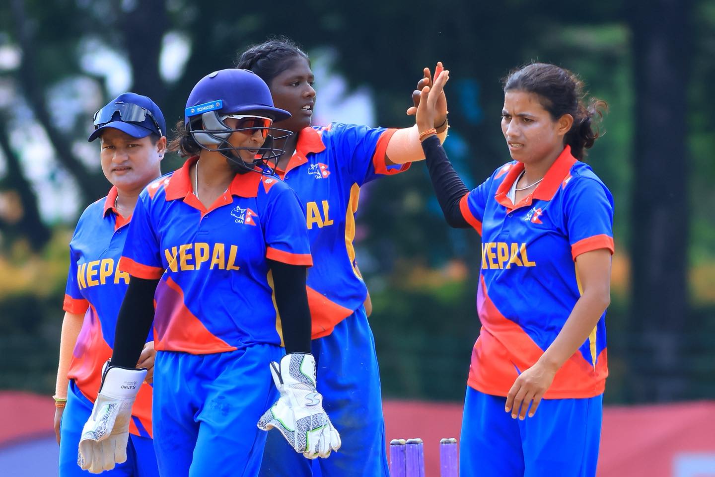 कविता कुँवर १४ र सम्झना खड्का १३ रनमा आउट भइन् । रुबिना क्षेत्री १५ रनमा नट आउट रहँदा कप्तान इन्दु बर्मा ८ रनमा आउट भइन् ।