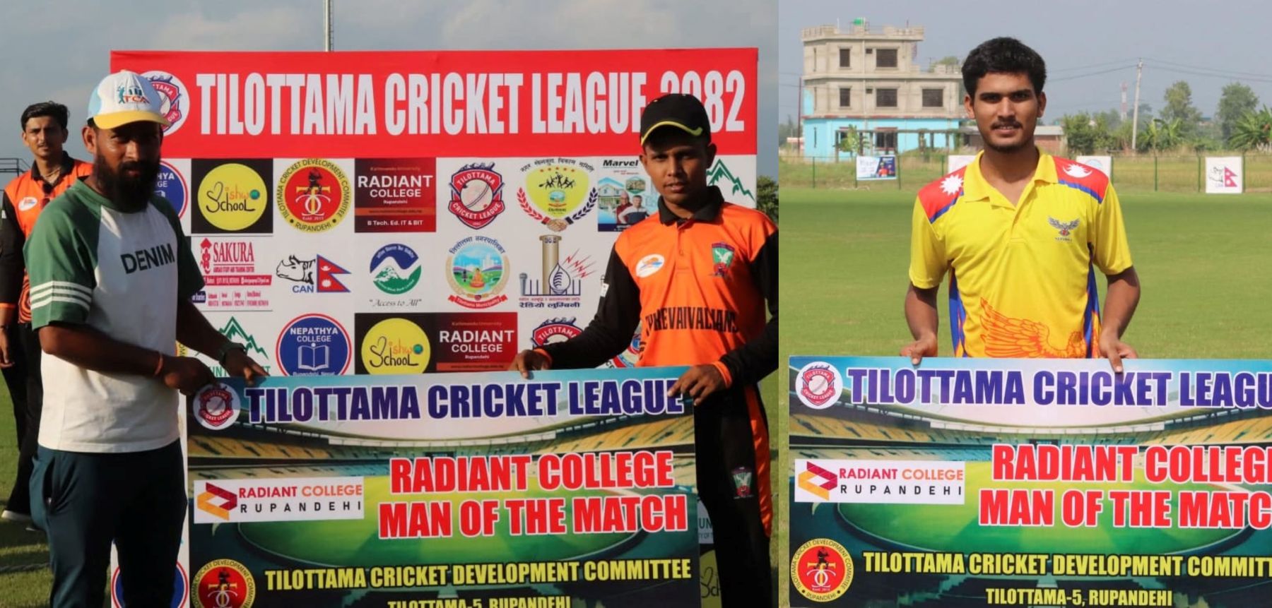 तिलोत्तमा क्रिकेट लिगको दोस्रो दिनको खेलमा नेपथ्य इगल्स र रामापुर रिभाइभलियन्स विजयी भएका छन् ।