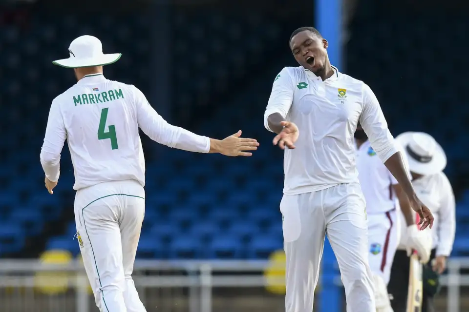 पहिलो ईनिङमा वेस्ट इन्डिजका लागि केसी कार्टीले ८१ बलमा ४२, कप्तान केग्री ब्रेथवेट र माईकाल लुईसले समान ३५ रन जोडे । जेसन होल्डरले ३६ तथा केभम हाड्ज २५ रन जोड्दा जमल वारिकेन ३५ रनमा अविजित रहेका छन् । दक्षिण अफ्रिकाका लागि केशव महाराजले ४ तथा कागिसो रबडाले ३ विकेट लिए ।